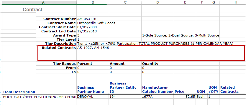 The Related Contracts field is added to the header of "Aperek" contract spreadsheet, for imports and exports, both single- and multi-tier formats.
